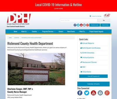 The Richmond County Health Department promotes the health and well-being of Richmond County residents by providing affordable primary and preventative healthcare services. It coordinates the statewide communicable disease control program that focuses on controlling the spread of HIV/STDs through the screening, diagnosis, and treatment of the infections. The program offers HIV/STD risk-reduction education in line with its objective.