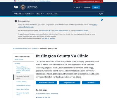 At Burlington County VA Clinic, veterans can access primary medical care, eye care, sleep medicine, women's healthcare, cardiology services, and foot care. The laboratory on location provides advanced HIV/STD testing procedures.