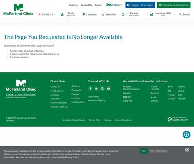 The clinic's website features a digital My Chart platform where you can make payments, check balances, and contact your doctors. You can also make payment by mail. Uninsured patients can access services at discounted rates after getting advice from the clinic's financial counselors. McFarland Clinicโs website has educational resources on STD symptoms and prevention to create awareness among patients and community members.