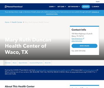 Mary Ruth Duncan Health Center of Waco is a Planned Parenthood facility that aims at providing quality health care services to residents living in and around Waco. It has physicians that are competent in testing and treating STDs effectively.