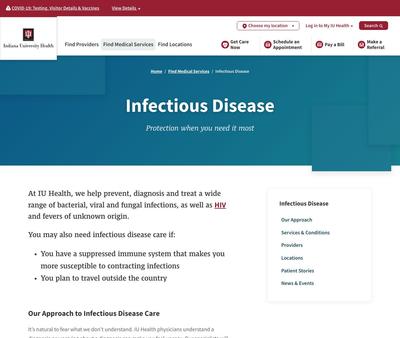IU Health Arnett Infectious Disease is part of the Indiana University Health network of care. To meet the diverse healthcare needs of it's patients, the health facility is staffed with a broad network of board-certified physicians, pediatricians, and internal medicine doctors, working together to deliver quality primary, specialty, and expert care.