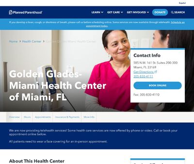 The Golden Glades Miami Health Center is operated by the Planned Parenthood of South, East, and North Florida. Planned Parenthood strives to be a leader for high-quality affordable health care and sexual health education. This Planned Parenthood offers cancer screenings, abortion services, STD testing, transgender care, education programs, and teen medical services. Patients can expect their services to be done within a clean office environment with friendly staff.