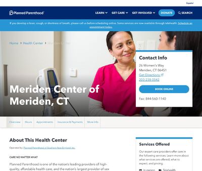 Meriden Health Center is a Planned Parenthood clinic that aims to enhance healthy living among residents in Meriden and its surroundings. Its nurses and physicians are sufficiently trained in testing, diagnosing and treating STDs as well as other diseases. The facility is also sufficiently equipped.
