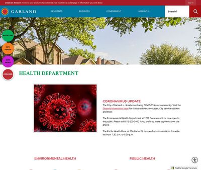 The Garland Health Department has two focuses, which are environmental health and public health. The public health section focuses on detecting, preventing, and responding to infectious diseases, providing vaccines and flu shots, researching disease and injury prevention, and promoting overall healthy lifestyle habits for those living in Garland, Texas.