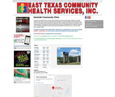 Eastside Community Clinic provides healthcare services to residents in Nacogdoches County and the surrounding regions. It has board-certified physicians who provide medical services such as STD testing and treatment, family planning, dental care, preventive health, lab tests, and mental health counseling.