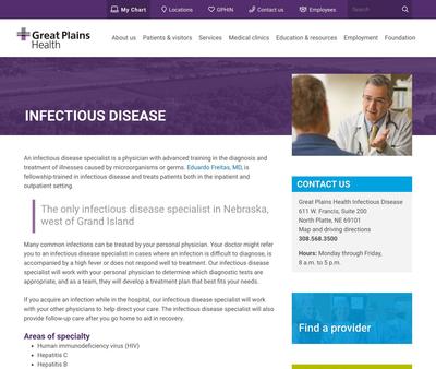Great Plains Health Infectious Disease is a non-profit, fully accredited health organization serving North Platte and the surrounding communities. The clinic offers quality care to anyone seeking testing and treatment for infectious diseases caused by bacteria, viruses, or fungi.