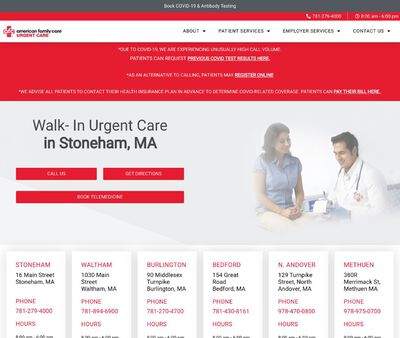 AFC Urgent Care in Stoneham is a health center that offers quality, affordable, and prompt health-care services to the people of Stoneham, MA, and its environs. The facility has licensed medical professionals who aim at offering personalized services to all patients. Its physicians specialize in urgent and primary care as well as occupational medicine. You may access STD screening services in a safe environment.