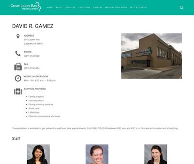 The David R. Gamez Center is run by the larger Great Lakes Bay Health Centers organization. The center provides testing and screening for assorted sexually transmitted diseases administered by board-accredited physicians and nurse practitioners. In addition to their testing services, the center offers counselling and referral services to specialists. Individuals will need to register as a patient before being eligible for medical care at the facilities. Free HIV testing is provided by the Hearth Home Prevention and Outreach center that is run by Great Lakes Bay Health Centers.
