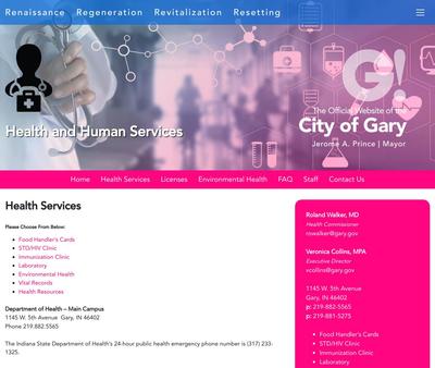 The Gary Health Department works to promote the health and well-being of people in Gary city and the surrounding regions. Services provided at the facility include environmental health, laboratory services, and health resources. Confidential STD/HIV examinations and laboratory testing are available at the STD clinic.
