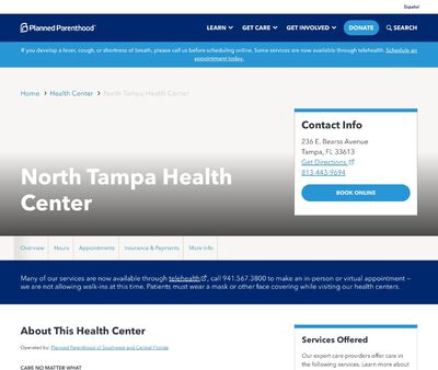 Planned Parenthoodโs objective has been to meet the high demand for reproductive and sexual health services not only in the USA but also globally. Planned Parenthood - North Tampa Health Center has enabled thousands of Wesley Chapel residents to get HIV/STD testing and treatment at affordable costs. With modern testing laboratory facilities and skilled professionals specialized in sexual health, patients are able to access quality services.