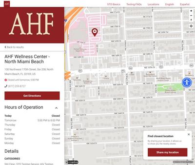 AHF Wellness Center - Jackson North ensures all clients have access to affordable care regardless of their ability to pay. It has qualified personnel who respond to the client's questions and needs. For HIV/STD evaluations, the health professionals request the patient to provide a blood sample, urine, or oral swabs. Your testing appointment may take up to 30 minutes.
