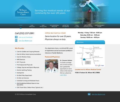 Wilson Immediate Care Clinic has been serving community members living in Wilson, North Carolina, for more than 20 years. The clinic is staffed with medical professionals who are proficient in providing services, including sports physicals, alcohol, and drug testing as well as audiograms and X-rays. It also has an onsite lab, which provides confidential STD screenings.
